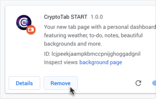 On your computer open CryptoTab Browser. B Remove CryptoTab from Google Chrome. In case the manual removal does not get rid of the hijacker redirect and its files completely you should search for and remove any leftovers with an advanced anti-malware tool.